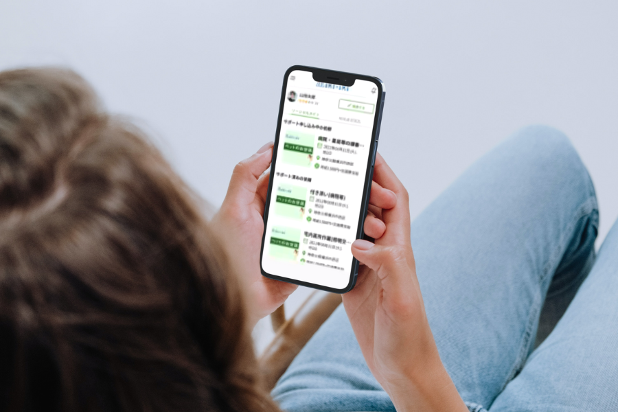 顔写真や現住所がわかる身分証明書の提示やオンライン面談による人となりの把握、サービスの意義や大切にすべきことの意識づけなどを行った上で、業務委託契約を締結しております。専用アプリ上では、サポートのエントリーを行ったソーシャルメイト®︎の顔画像やお名前、サポート評価が把握できますので、より安心してご利用いただけます。